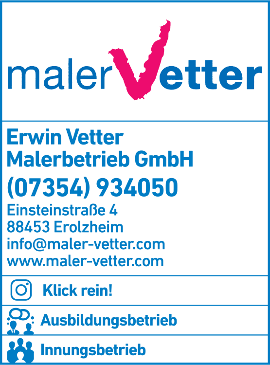 Die Adresse von Vetter Erwin Malerbetrieb GmbH Maler lautet: Einsteinstr. 4, 88453 Erolzheim