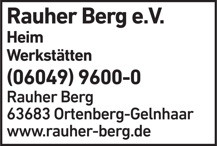 Die Adresse von Rauher Berg e.V. Heim und Werkstätten lautet: Rauher Berg, 63683 Ortenberg