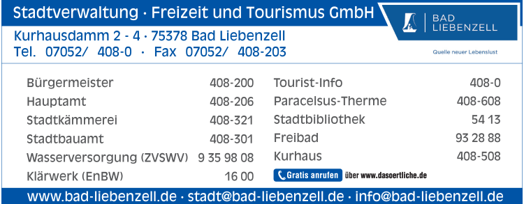 Wie lautet die Adresse von Stadtverwaltung Bad Liebenzell?