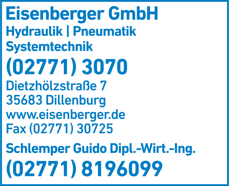 Die Adresse von Eisenberger GmbH Ingenieurbüro lautet: Dietzhölzstr. 7, 35683 Dillenburg