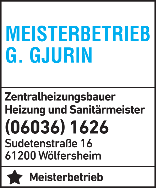 Die Adresse von Gjurin Heizungsbau und Sanitär Einrichtungs GmbH lautet: Sudetenstr. 16, 61200 Wölfersheim
