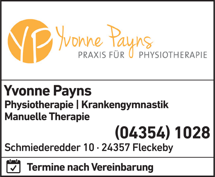 Die Adresse von Payns Yvonne Krankengymnastik lautet: Schmiederedder 10, 24357 Fleckeby