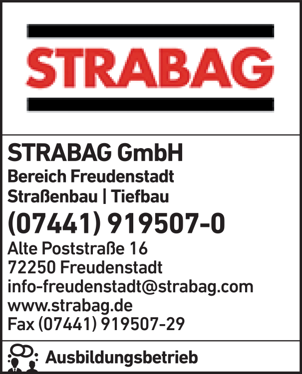 Die Adresse von STRABAG GmbH lautet: Alte Poststr. 16, 72250 Freudenstadt
