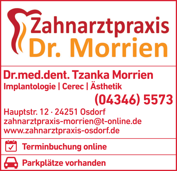 Die Adresse von Morrien Tzanka Dr. med. dent. Implantologie lautet: Hauptstr. 12, 24251 Osdorf