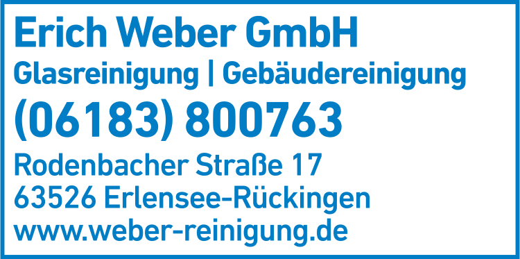 Weber Gebäudereinigung 06183 80 07 63 Erlensee Rodenbacher Str. 17 63526 Rückingen