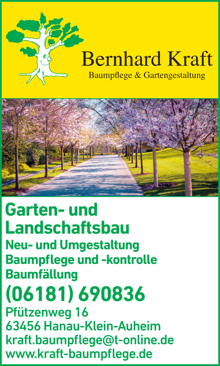 Kraft Bernhard Garten- und Landschaftsbau 06181 69 08 36 Hanau Pfützenweg 16 63456 Klein-Auheim