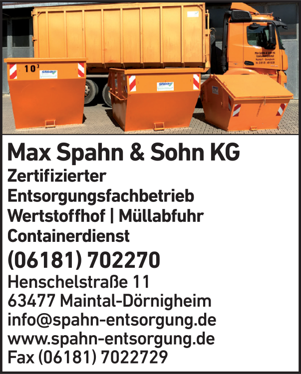Die Adresse von Max Spahn & Sohn KG Containerdienst lautet: Henschelstr. 11, 63477 Maintal