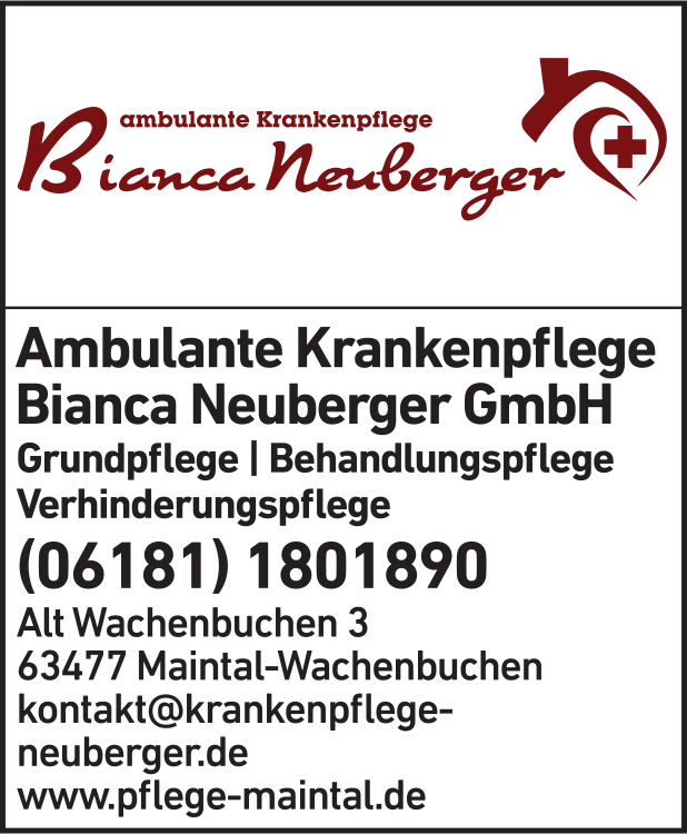 Die Adresse von Bianca Neuberger GmbH Ambulante Krankenpflege lautet: Alt Wachenbuchen 3, 63477 Maintal