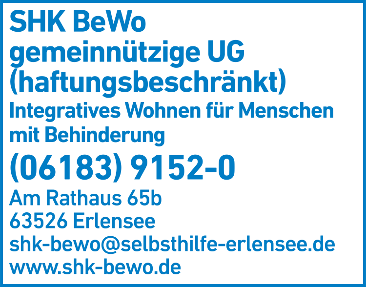 Die Adresse von SHK BeWo gemeinnützige UG (haftungsbeschränkt) lautet: Am Rathaus 65 B, 63526 Erlensee