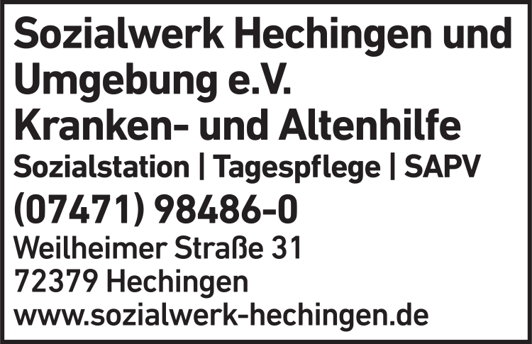 Wie lautet die Adresse von Sozialwerk Hechingen und Umgebung e.V. Kranken- und Altenhilfe?