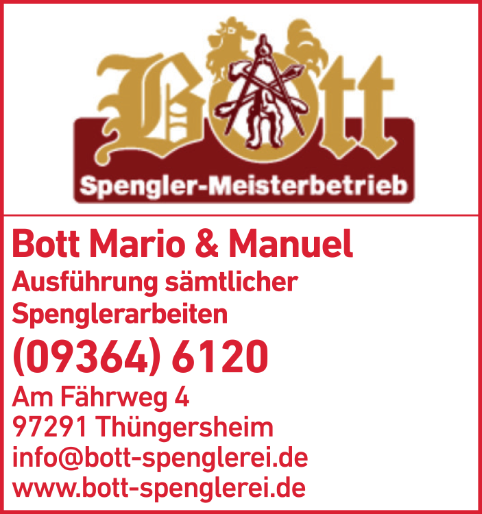 Die Adresse von Bott Mario & Manuel Spenglerei lautet: Am Fährweg 4, 97291 Thüngersheim