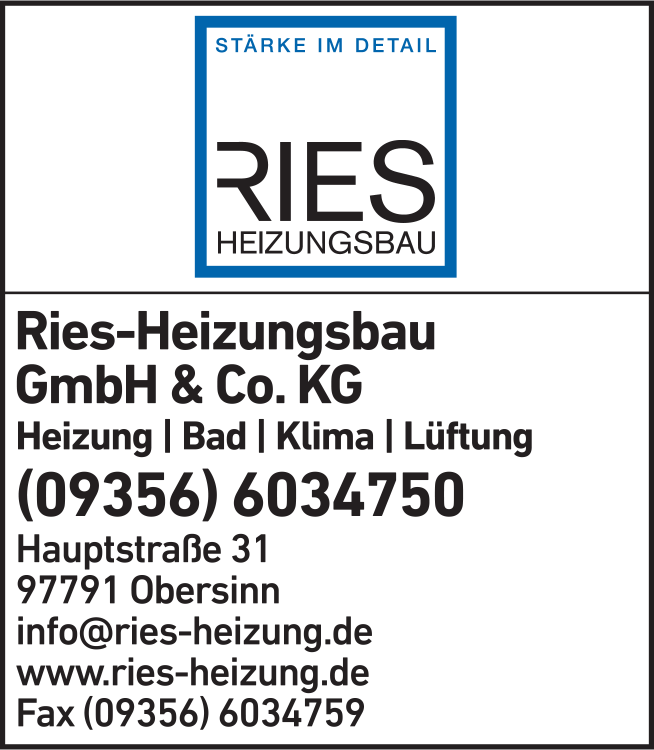 Die Adresse von Ries-Heizungsbau GmbH & Co. KG lautet: Hauptstr. 31, 97791 Obersinn