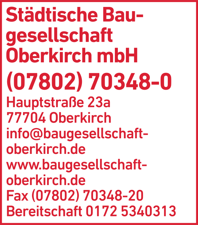 Wie lautet die Adresse von Städtische Baugesellschaft Oberkirch mbH?