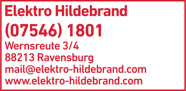 Die Adresse von Hildebrand Günter Elektro lautet: Wernsreute 3/4, 88213 Ravensburg