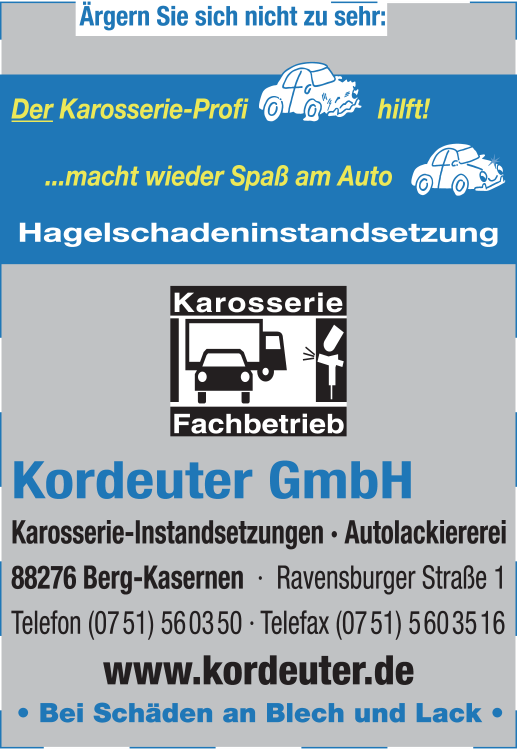Die Adresse von Kordeuter GmbH lautet: Ravensburger Str. 1, 88276 Berg