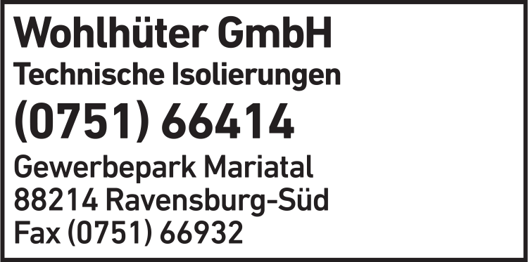 Die Adresse von Wohlhüter GmbH lautet: Kreuzäcker 15, 88214 Ravensburg