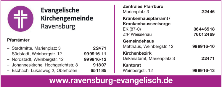 Wie lautet die Adresse von Evangelische Kirche in Ravensburg?