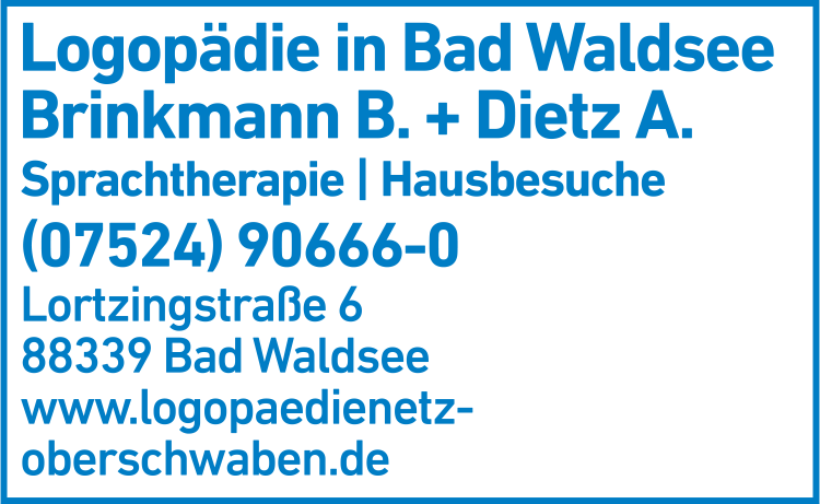 Wie lautet die Adresse von Logopädie in Bad Waldsee Brinkmann + Dietz Logopädie?