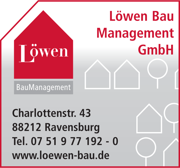 Die Adresse von Löwen Bau Management GmbH lautet: Charlottenstr. 43, 88212 Ravensburg