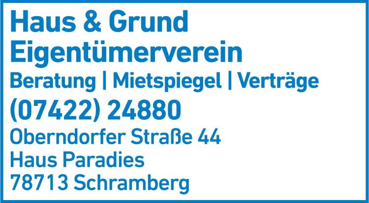 Haus- & Grundeigentümerverein Schramberg e.V. Haus & Grund 07422 24 88-0 Schramberg Oberndorfer Str. 44 78713