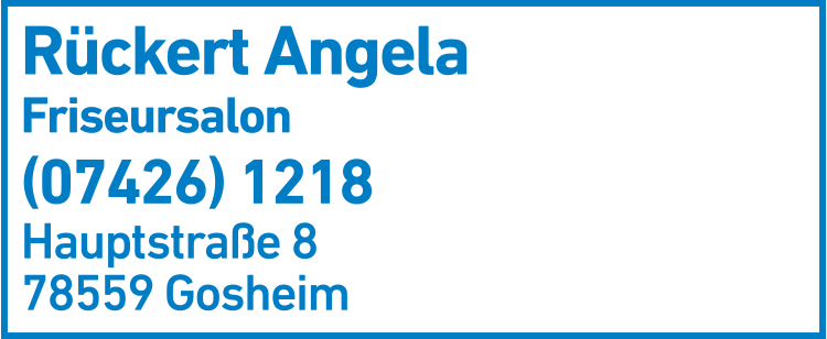 Die Adresse von Rückert Angela Friseursalon lautet: Hauptstr. 8, 78559 Gosheim