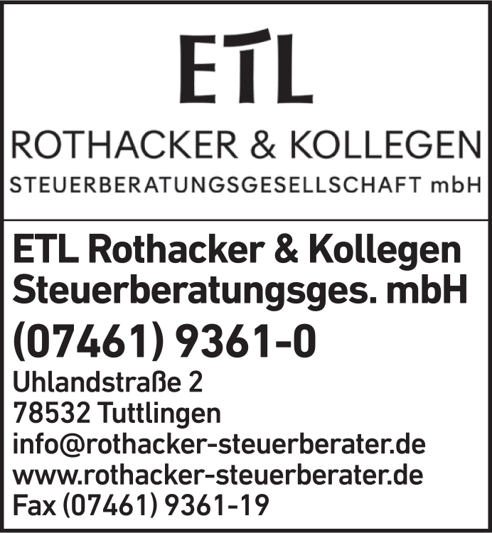 Die Adresse von ETL Rothacker & Kollegen Steuerberatungsgesellschaft mbH lautet: Uhlandstr. 2, 78532 Tuttlingen