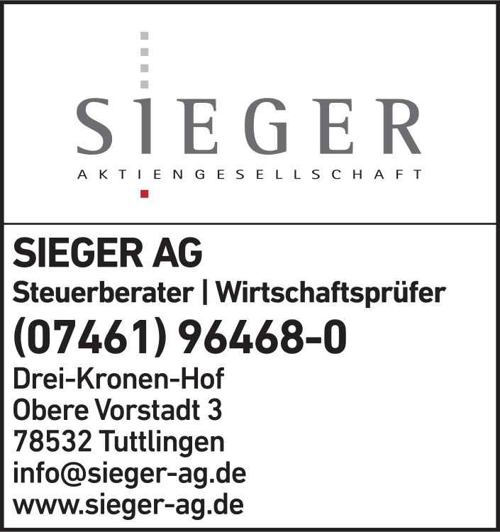 Die Adresse von Sieger AG Aktiengesellschaft lautet: Obere Vorstadt 3, 78532 Tuttlingen