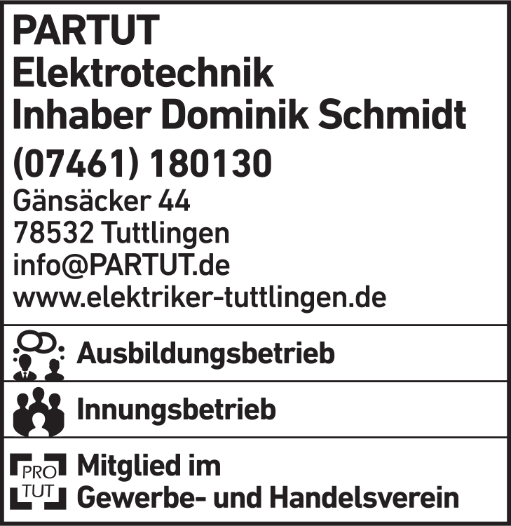 Die Adresse von PARTUT Elektrotechnik lautet: Gänsäcker 44, 78532 Tuttlingen