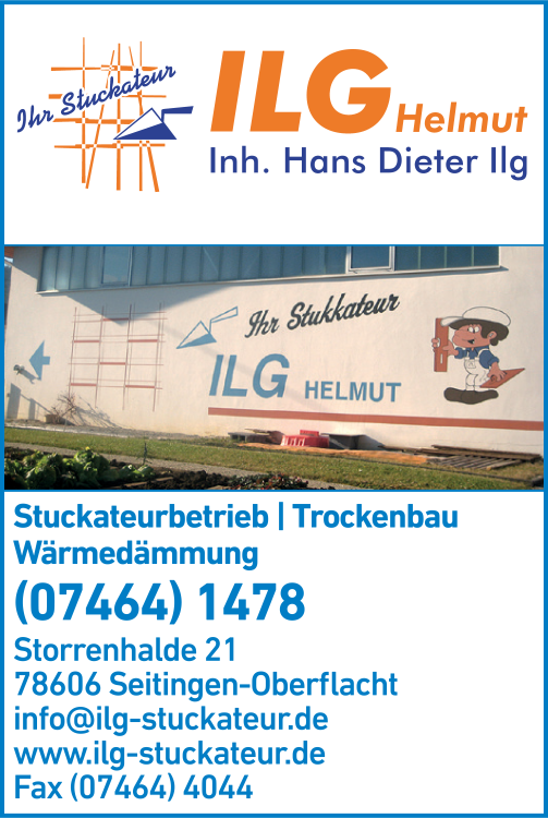Die Adresse von Ilg Helmut Stuckateurbetrieb lautet: Storrenhalde 21, 78606 Seitingen-Oberflacht