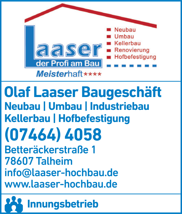 Laaser Baugeschäft 07464 40 58 Talheim Betteräckerstr. 1 78607 de.teleauskunft.oetb.webapp2.detail.Graphic@4441caf2