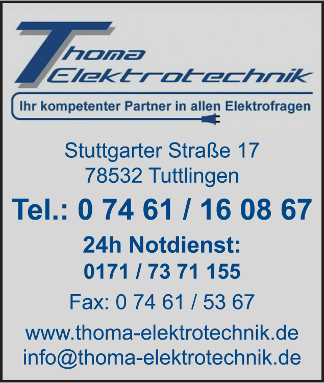 Die Adresse von Thoma - Elektrotechnik lautet: Stuttgarter Str. 17, 78532 Tuttlingen
