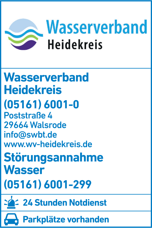 Wasserverband Heidekreis 05161 60 01-0 Walsrode Poststr. 4 29664