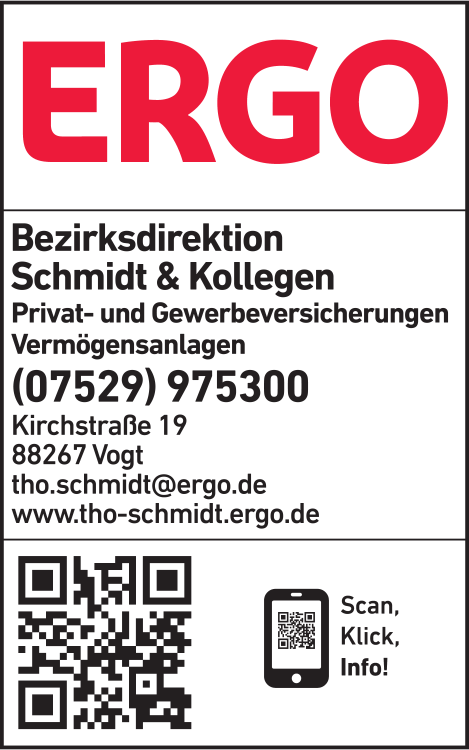 Die Adresse von Bochtler Christa, Schmidt Thomas, Silbereis Joachim, Manuel Stark ERGO-Bezirksdirektion Schmidt & Kollegen lautet: Kirchstr. 19, 88267 Vogt