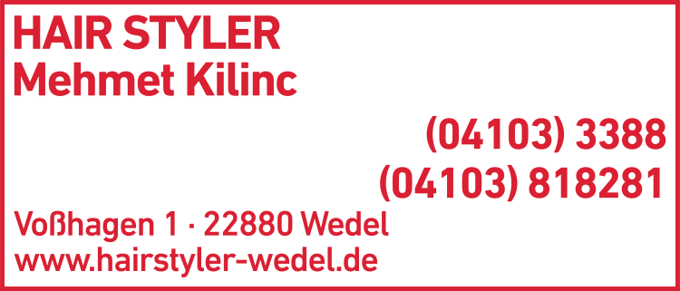Die Adresse von Hair Styler lautet: Voßhagen 1, 22880 Wedel