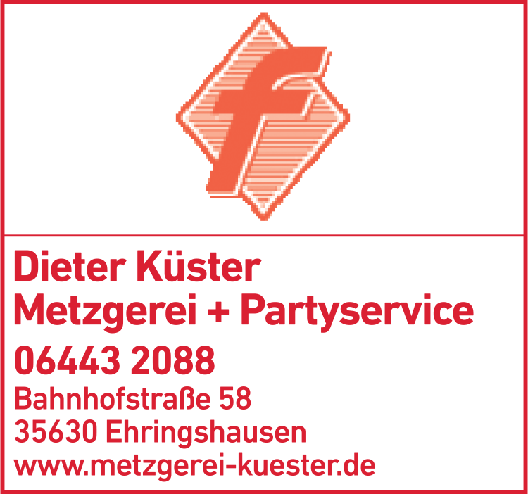 Die Adresse von Küster Dieter Metzgerei lautet: Bahnhofstr. 58, 35630 Ehringshausen