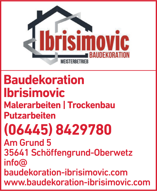 Die Adresse von Ibrisimovic Asmir Baudekoration lautet: Am Grund 5, 35641 Schöffengrund-Oberwetz
