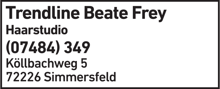 Die Adresse von Haarstudio Trendline lautet: Köllbachweg 5, 72226 Simmersfeld