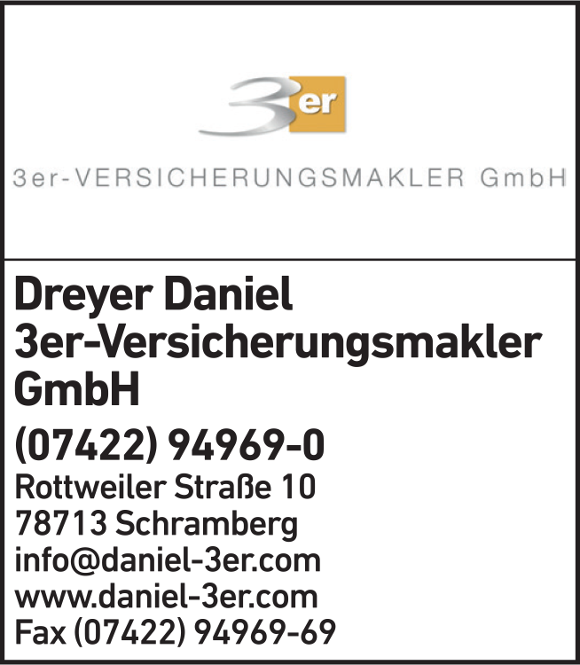 Die Adresse von 3er-VERSICHERUNGSMAKLER GmbH lautet: Rottweiler Str. 10, 78713 Schramberg