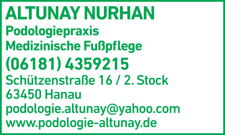 ALTUNAY Podologie-Praxis 06181 4 35 92 15 Hanau Schützenstr. 16 2.Sto¬ 63450 de.teleauskunft.oetb.webapp2.detail.Graphic@2382600f