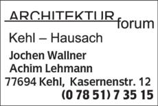 Die Adresse von ARCHITEKTURforum lautet: Kasernenstr. 12, 77694 Kehl