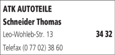 Die Adresse von ATK Autoteile lautet: Leo-Wohleb-Str. 13, 78176 Blumberg