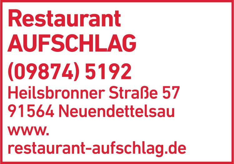 AUFSCHLAG! Restaurant Gaststätte 09874 51 92 Neuendettelsau Heilsbronner Str. 57 91564