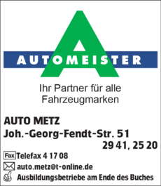 Die Adresse von AUTO METZ lautet: Johann-Georg-Fendt-Str. 51, 87616 Marktoberdorf