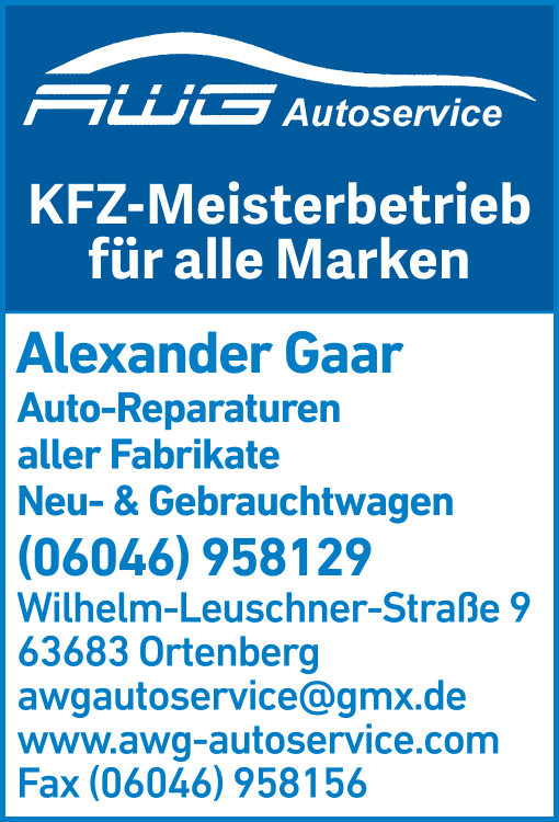 Die Adresse von AWG Autoservice Gaar Alexander Autohaus lautet: Wilhelm-Leuschner-Str. 9, 63683 Ortenberg
