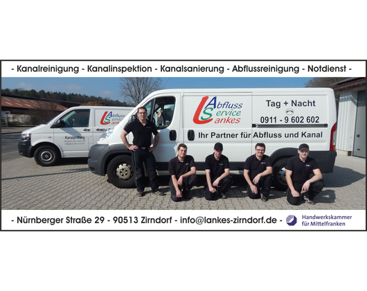 Die Adresse von Abflussservice Lankes lautet: Nürnberger Str. 29+30, 90513 Zirndorf