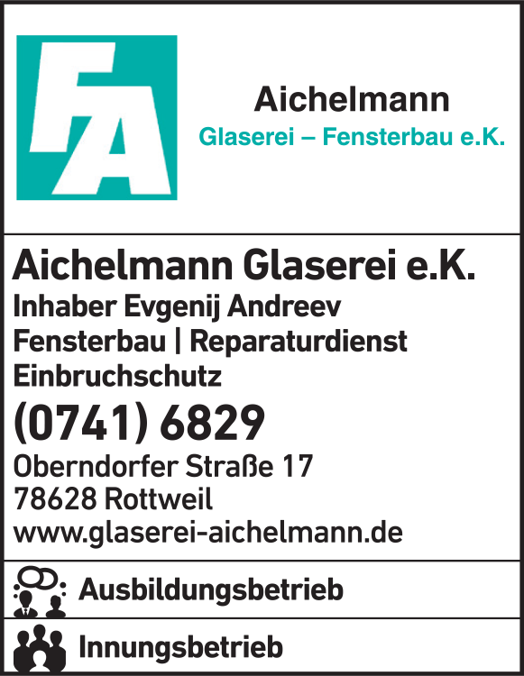 Die Adresse von Aichelmann Glaserei-Fensterbau e.K. lautet: Oberndorfer Str. 17, 78628 Rottweil