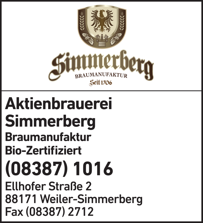 Die Adresse von Aktienbrauerei Simmerberg lautet: Ellhofer Str. 2, 88171 Weiler-Simmerberg