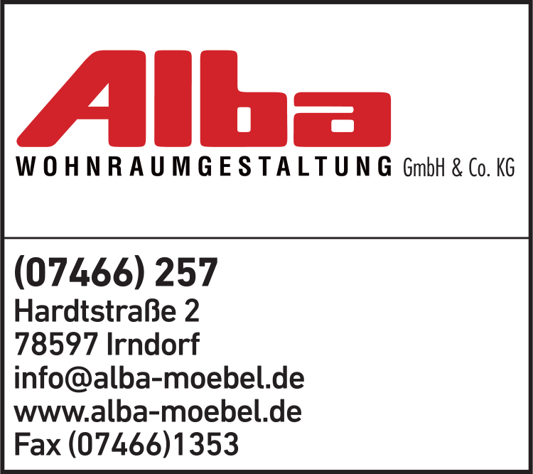 Die Adresse von Alba Wohnraumgestaltung GmbH & Co. KG lautet: Hardtstr. 2, 78597 Irndorf