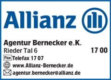 Die Adresse von Allianz Agentur Bernecker lautet: Rieder Tal 6, 91795 Dollnstein