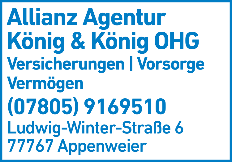Allianz Versicherung König & König OHG Firmenfachagentur 07805 9 16 95-10 Appenweier Ludwig-Winter-Str. 6 77767 de.teleauskunft.oetb.webapp2.detail.Graphic@7f2b9eb